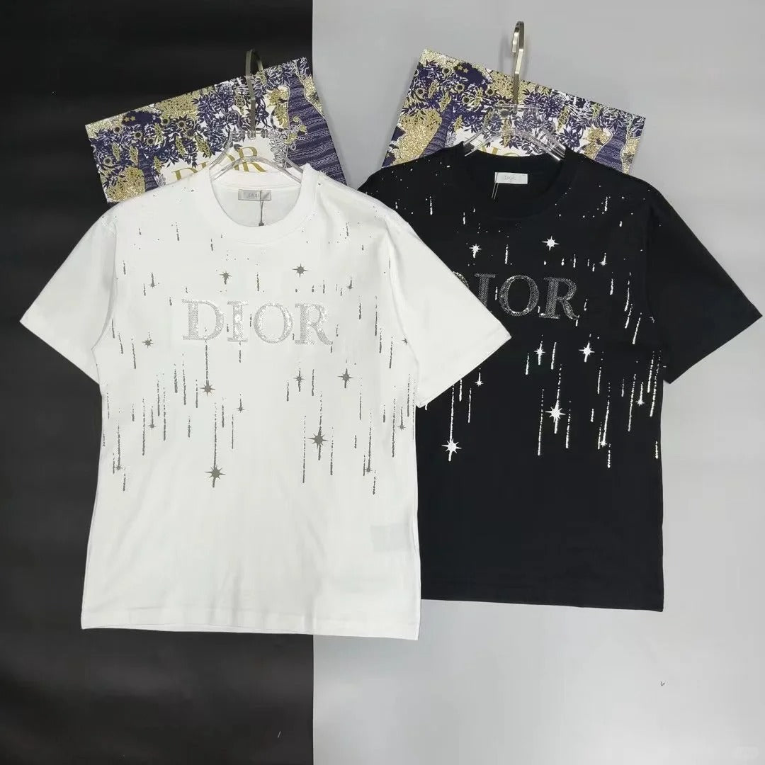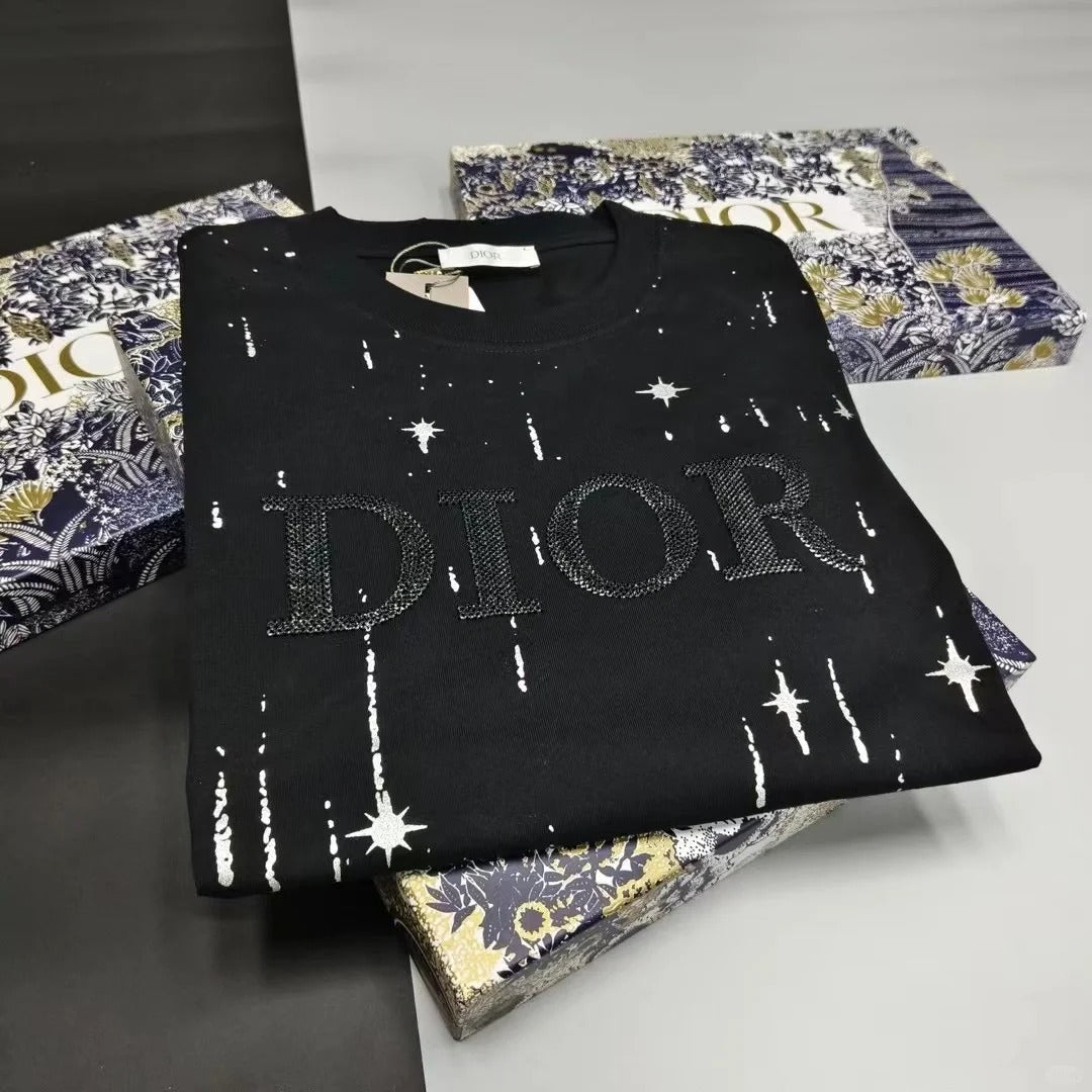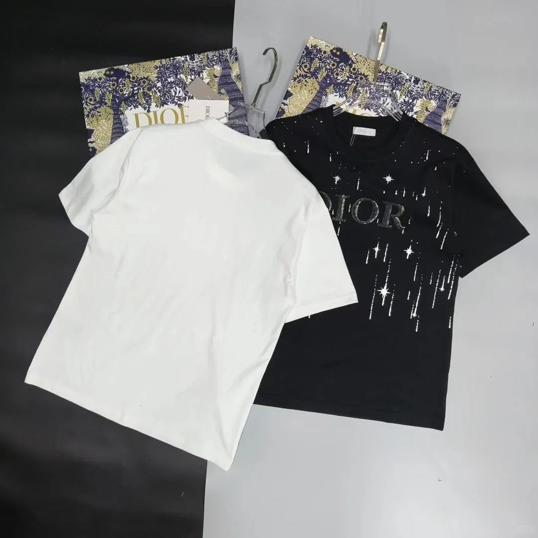 Embroidered cotton loose-fitting round neck short-sleeved T-shirt