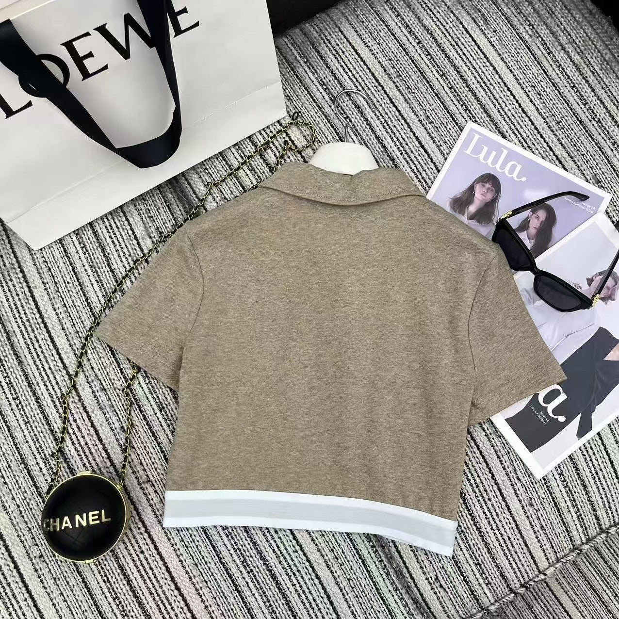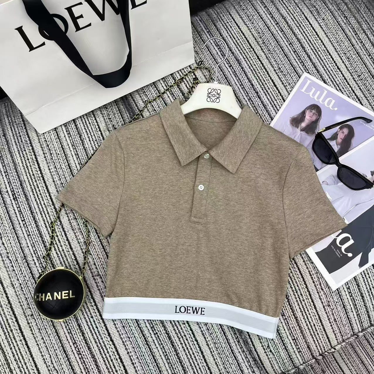 25 Early Spring Splicing Letter Ribbon Lapel Short Sleeve Suit