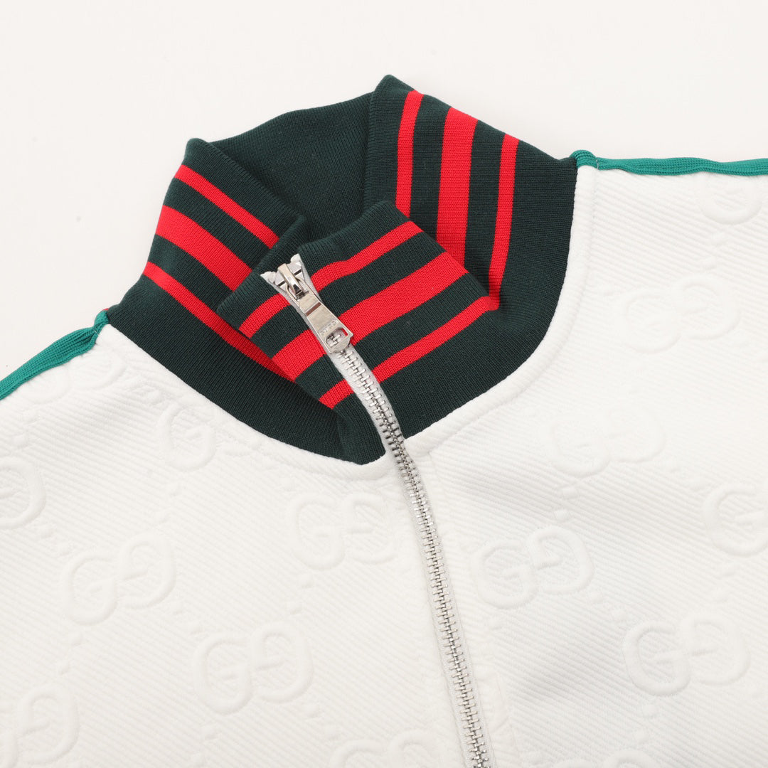 Chaqueta jacquard estampada integral con cinta lateral.