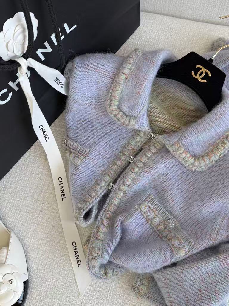 Doll collar heavy hand-crocheted collar light blue purple cardigan