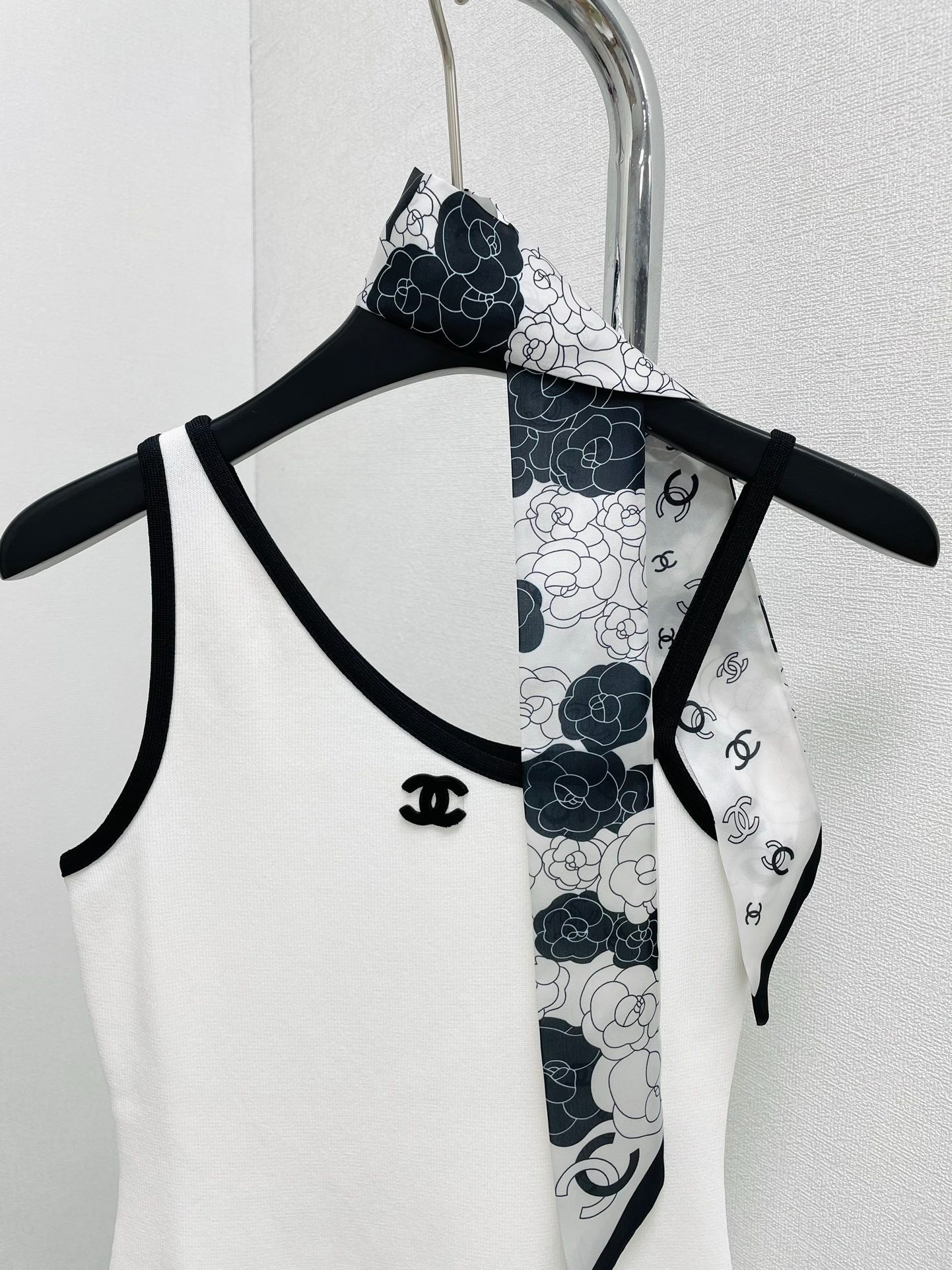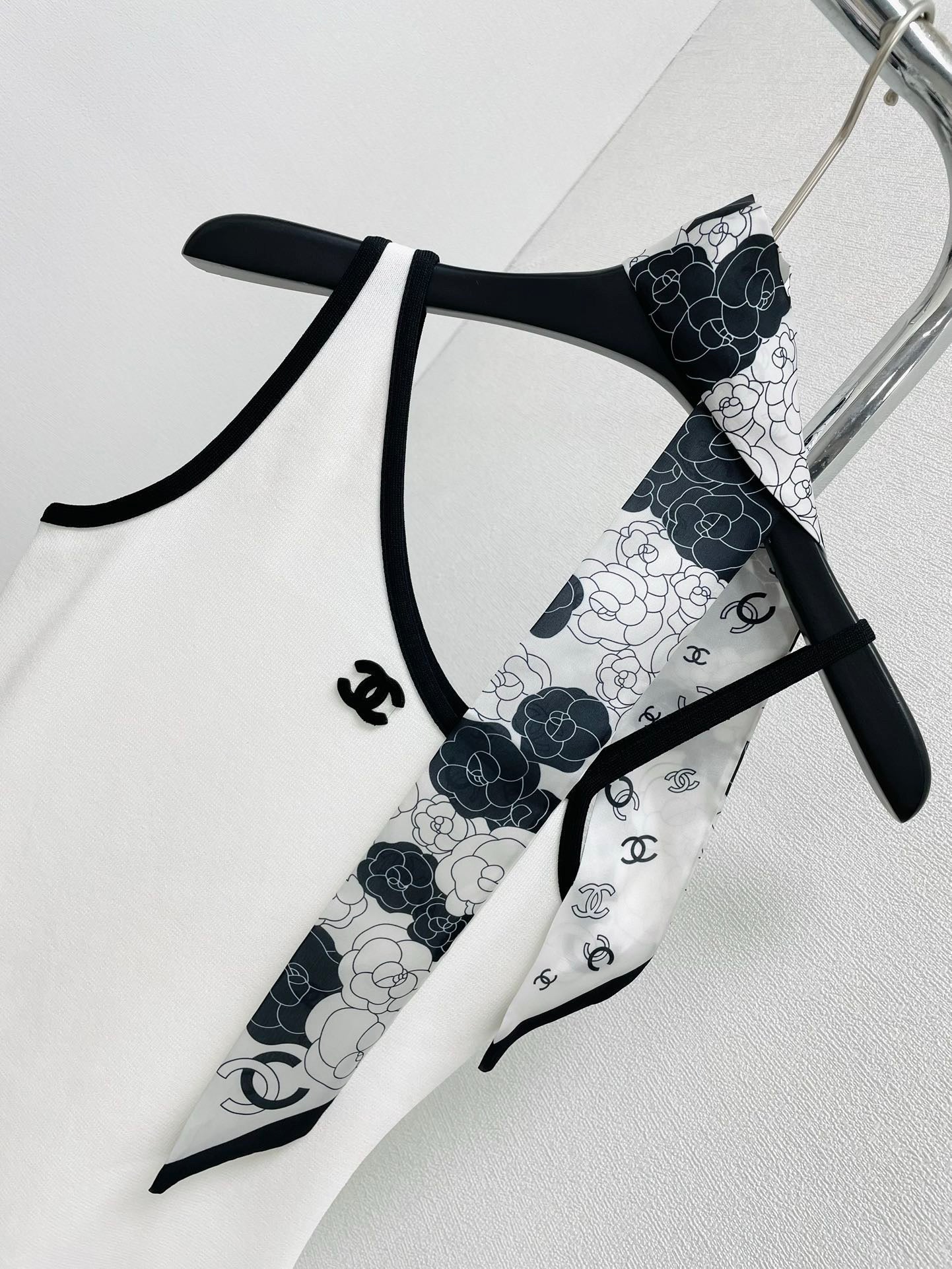 Off-shoulder suspender skirt
