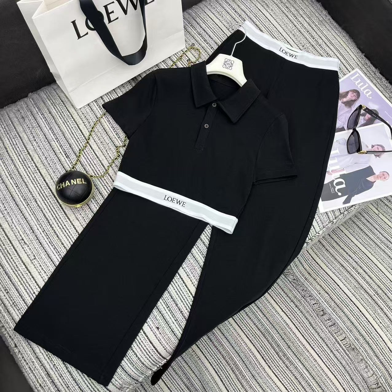 25 Early Spring Splicing Letter Ribbon Lapel Short Sleeve Suit