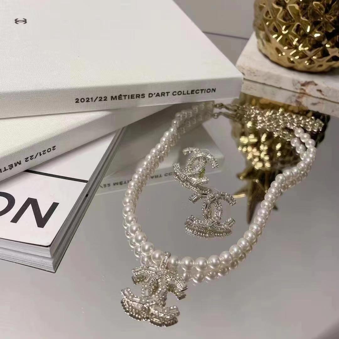 New pearl and diamond logo necklace