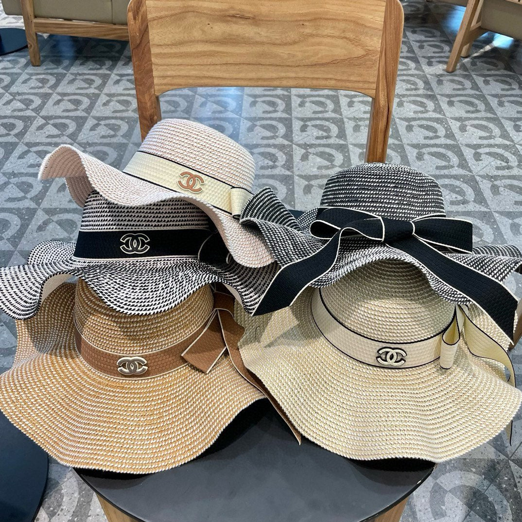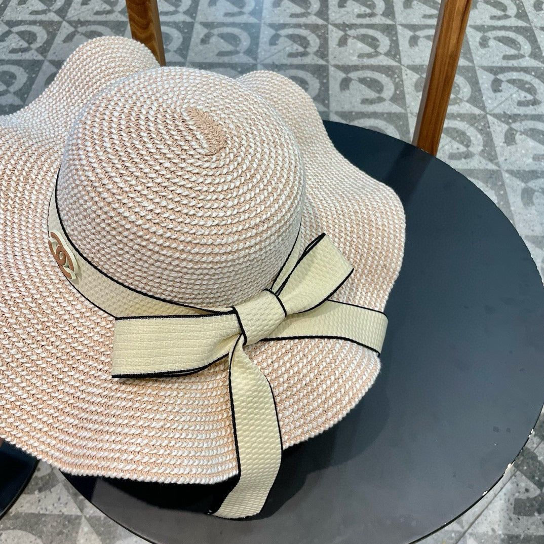 Ruffled pearl style wide brim hat