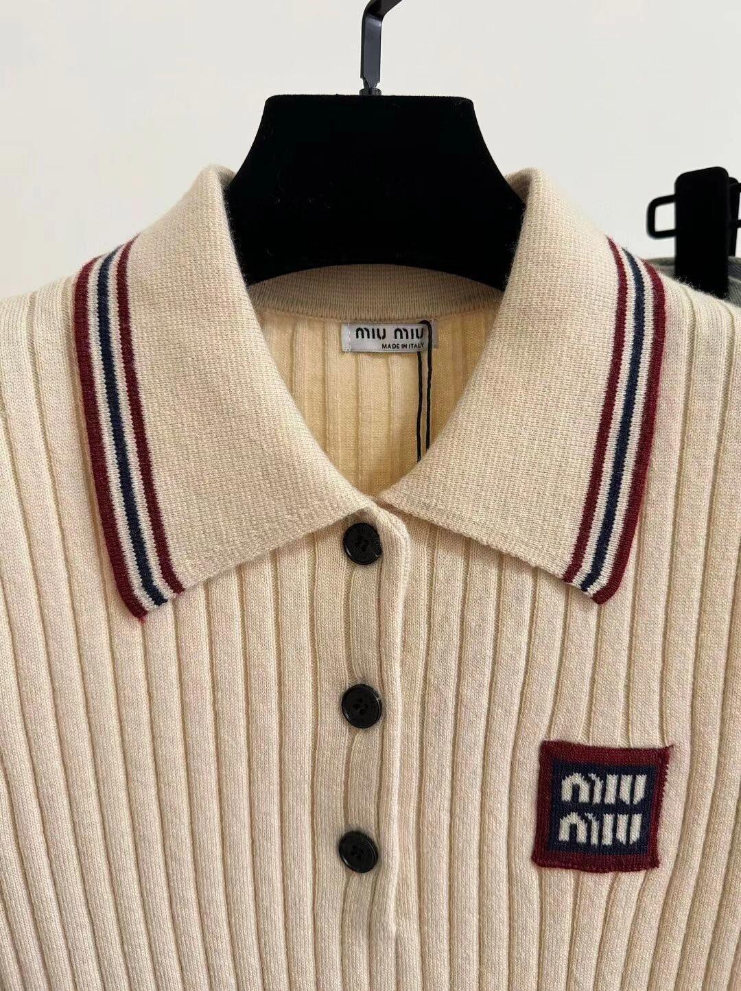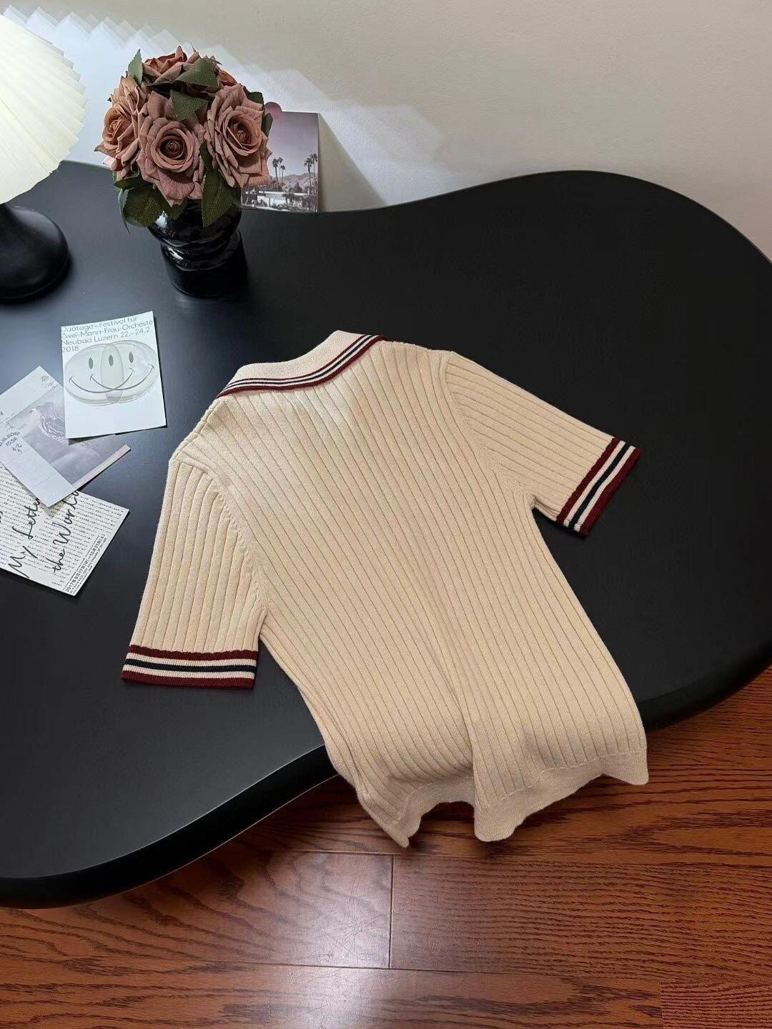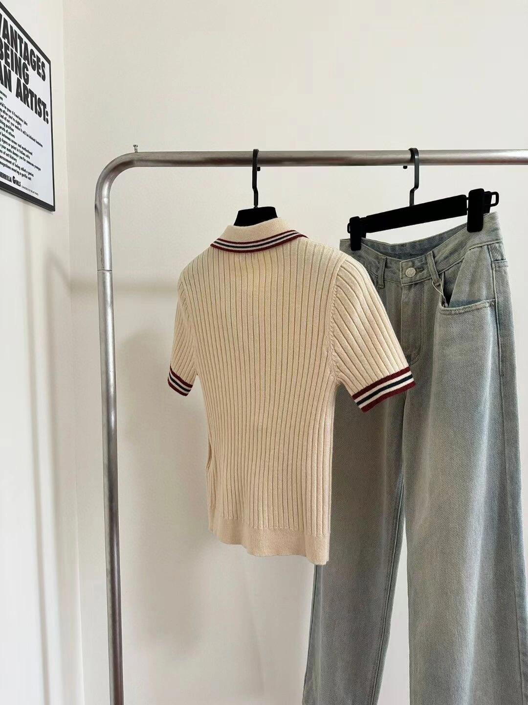 Color block knitted polo collar short sleeves