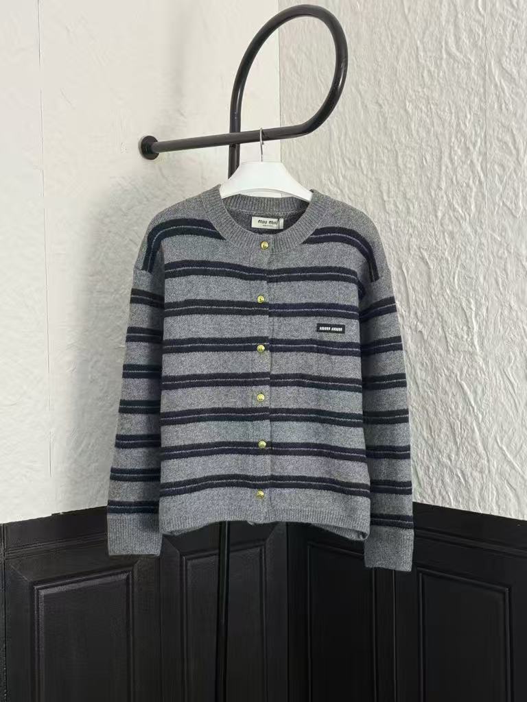 Striped Crew Neck Cardigan