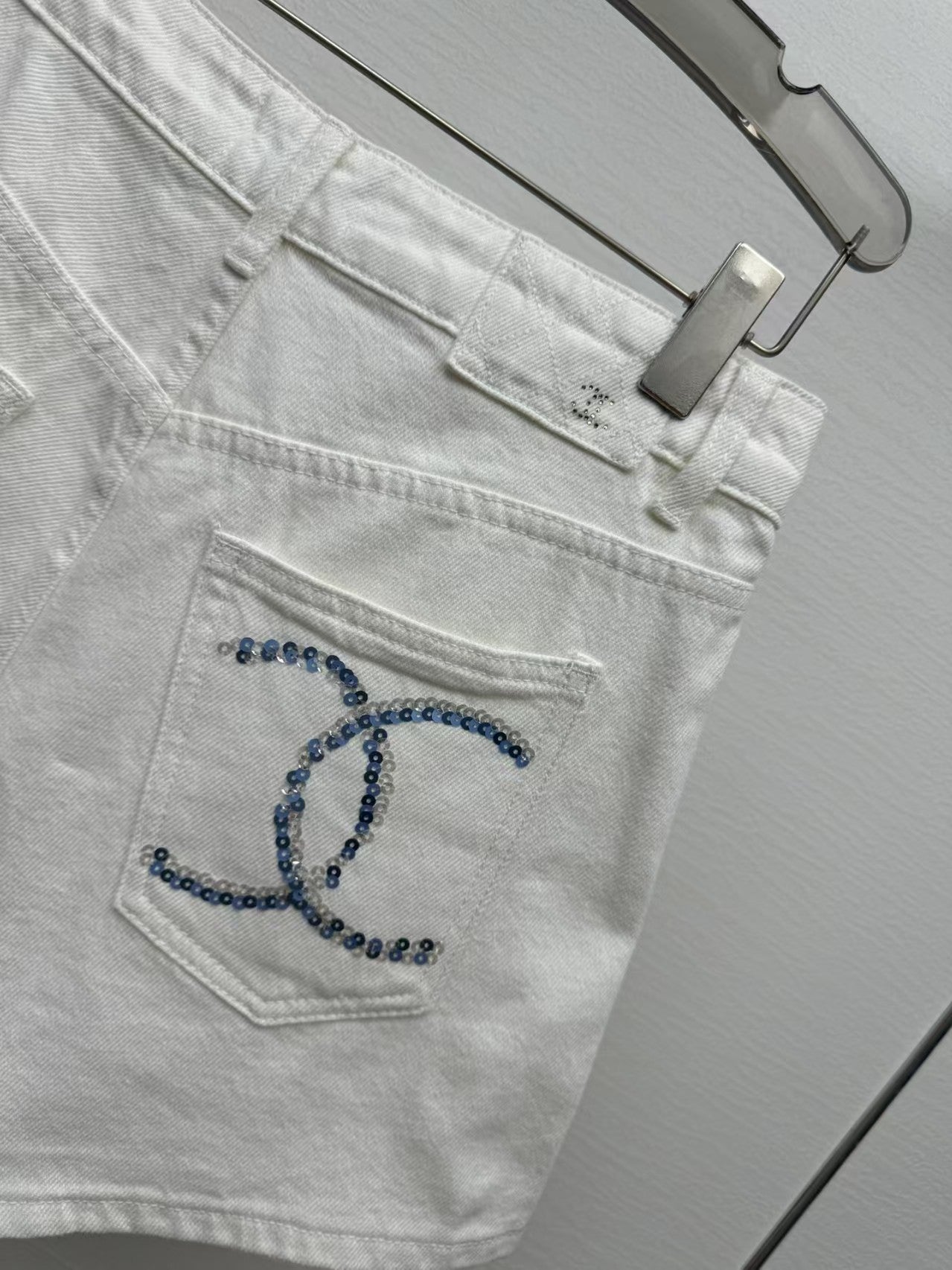 printed denim shorts