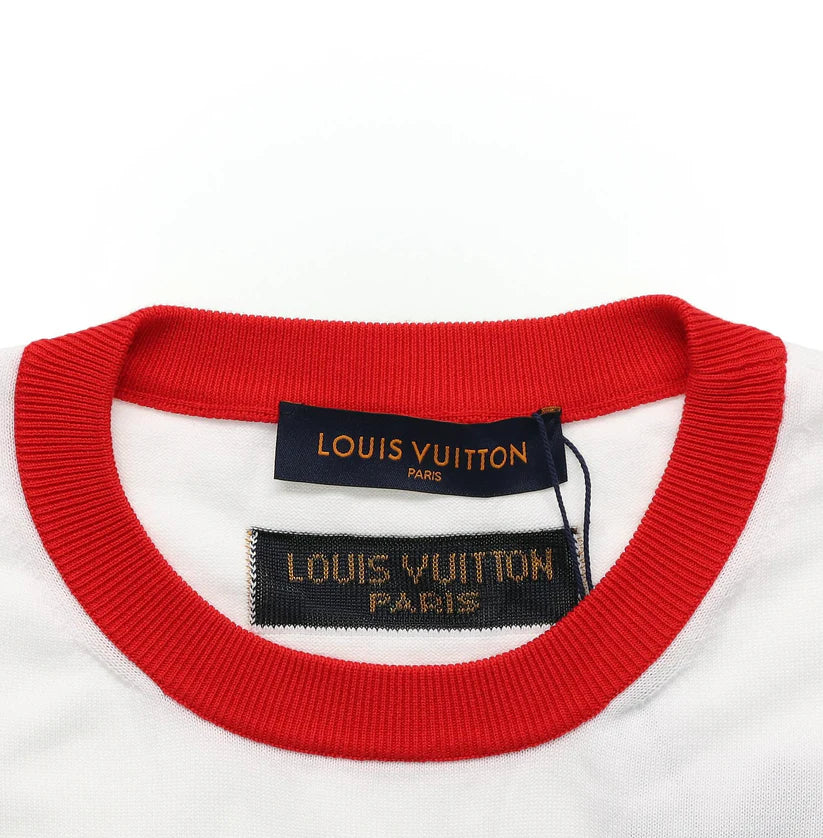 Red and blue jacquard large letter short sleeves