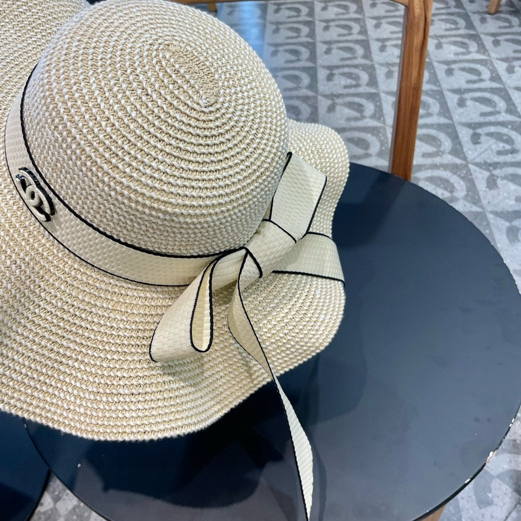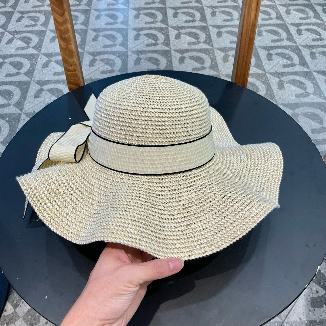 Ruffled pearl style wide brim hat