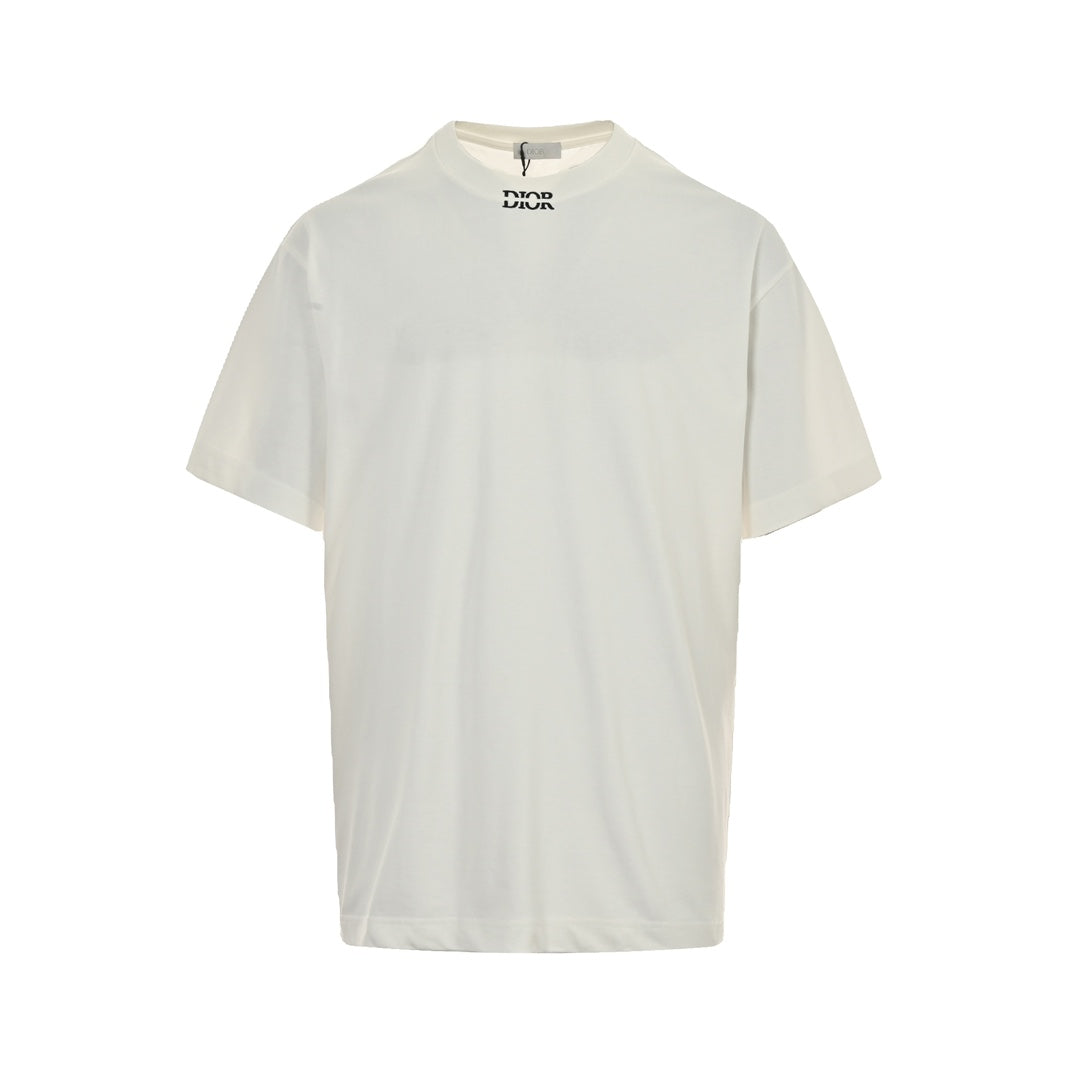 Short sleeves with letter embroidery on neckline